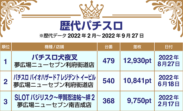 新台の『パチスロ BOØWY』や最近のピックアップでは常連となっている『パチスロ犬夜叉』などが好成績を残した。
