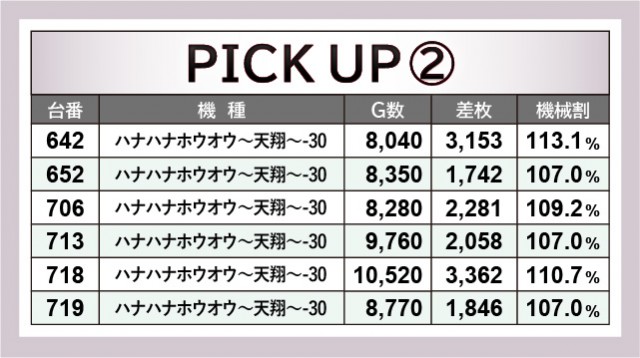 『パチスロ バイオハザード RE:2』は設置されている4台全てが、朝から閉店までじっくりと遊技されていた。その中で460番台+7,171枚という突出した記録が生まれ、これには遊技していたファンも頬を緩ませていたことだろう。またお馴染みとなりつつある『ハナハナホウオウ~天翔~-30』でも、718番台10,520G・3,362枚という記録が鮮烈だ。こちらも同様に絶え間なくレバーが叩かれ、まとまった出玉を確保していた様子が窺える。