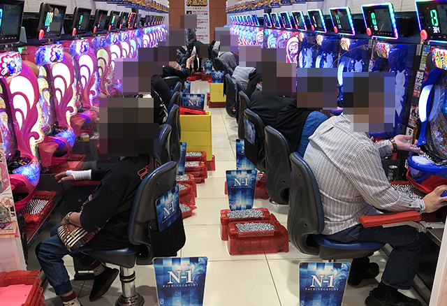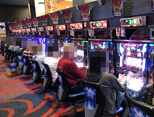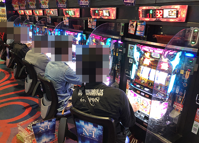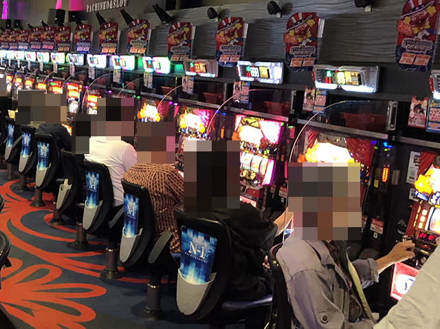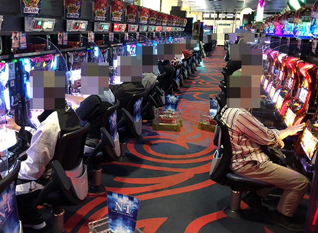 にぎわいが大きく、シャッターチャンスも多かった「エヌワン長岡柏町店」。パチンコとパチスロの両方で楽しげなプレイヤーがみられた。