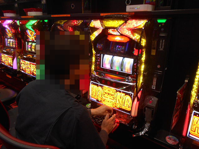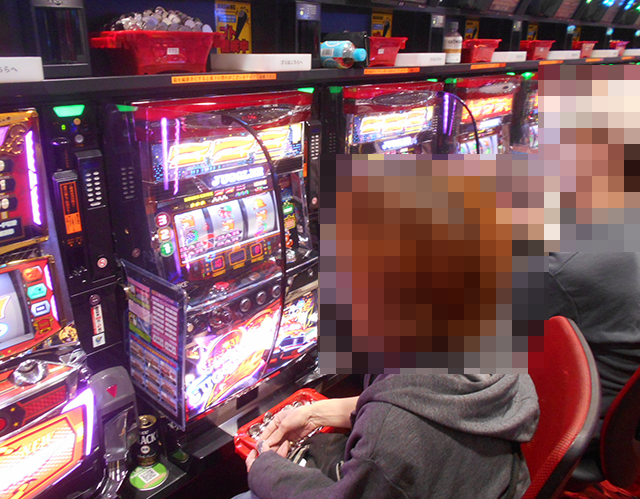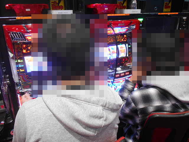カチ撮りポイントの1つ目は、5台が満席となっていた「アイムジャグラーEX」!