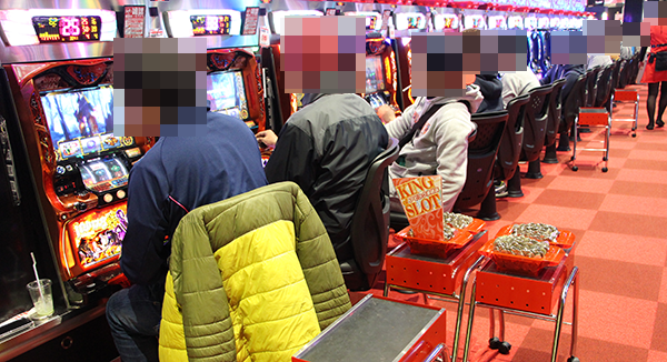 ほかにも活気が感じられる場所はあちこちにあり、「パチスロ百花繚乱サムライガールズ」や「パチスロ偽物語」、「プレミアムビンゴ」なども取材中はつねに満席に近い状況。
