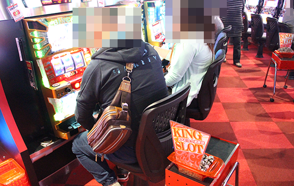 午後の1000円/47枚パチスロでは、「バジリスク~甲賀忍法帖~絆」と「パチスロ北斗の拳 強敵」の盛り上がりがコーナー内でもとくに大きく、昨日にも負けないほどに素敵な光景が広がっていた。