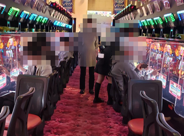 ナイスな3台並びに出会えることを期待しながら、パチスロコーナーをまわっていると、「押忍!番長ZERO」で活躍をしているプレイヤーを発見!