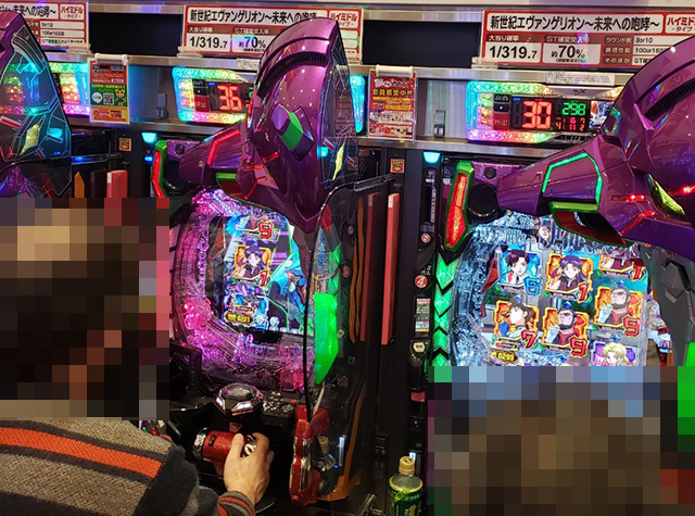 15時半を過ぎた頃の「新世紀エヴァンゲリオン~未来への咆哮~」をみると、複数台の大当り回数が30回オーバー。