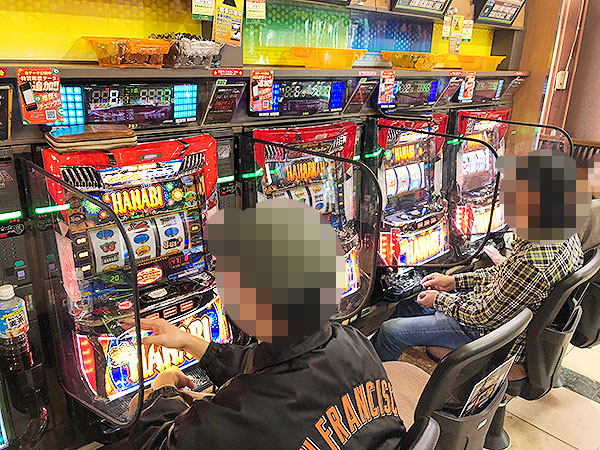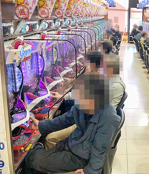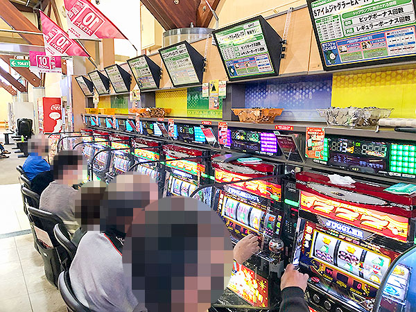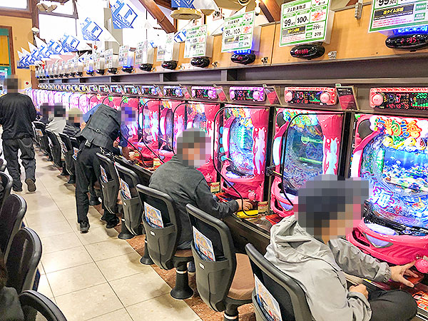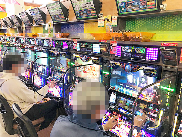 取材時は多くのプレイヤーが来店。パチンコ・パチスロともに、様々な機種が支持を得ていた。
