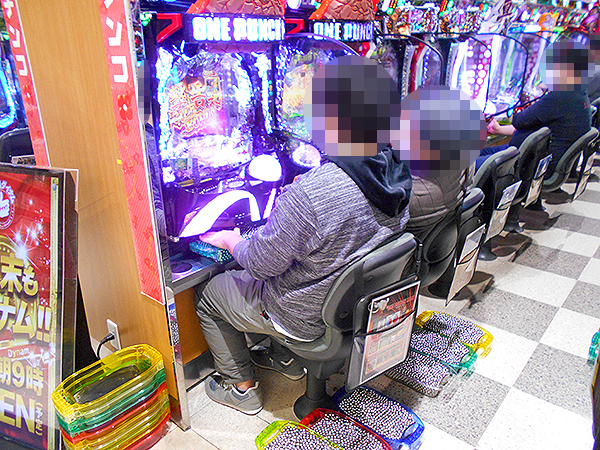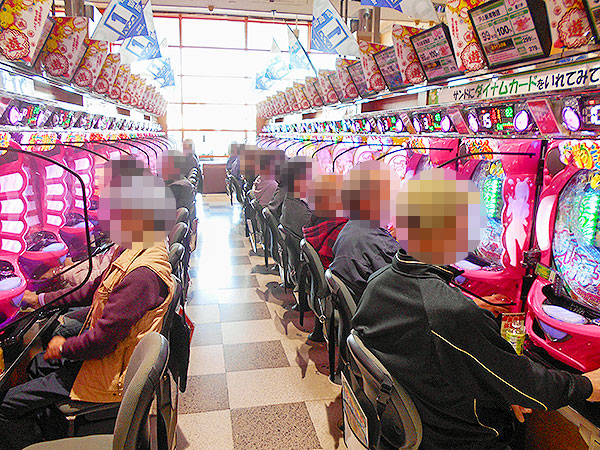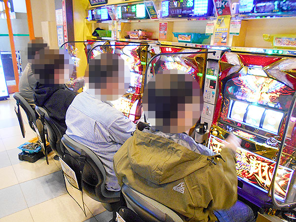 取材時は既に多くのプレイヤーが集結し、パチンコ・パチスロを問わずにぎやかな状況となっていた。