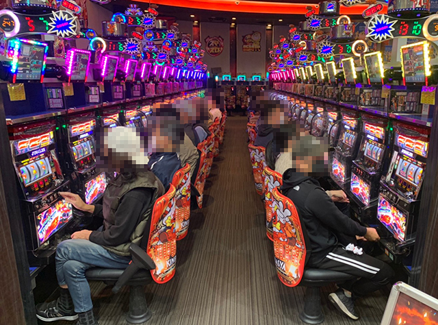 前回の結果が凄まじすぎただけに、朝からパチスロコーナーは大賑わい。