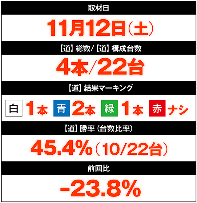 前回10月22日のヒーローズロードでは、【道】勝率69.2%というとんでもない数値を叩き出した「マルハン山鹿店」。