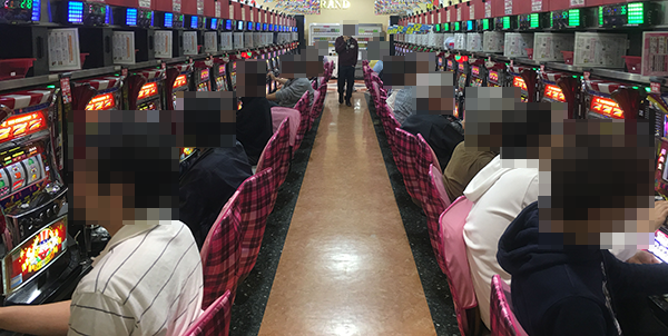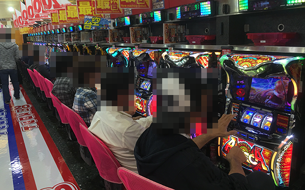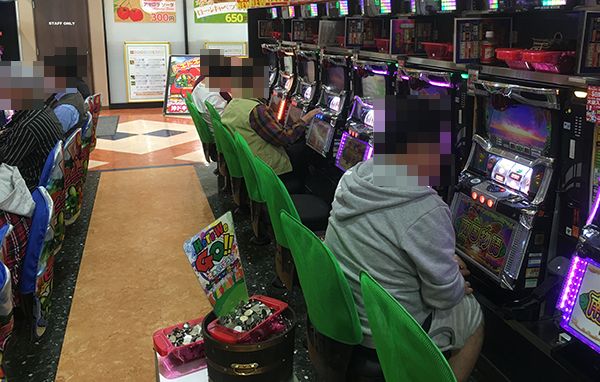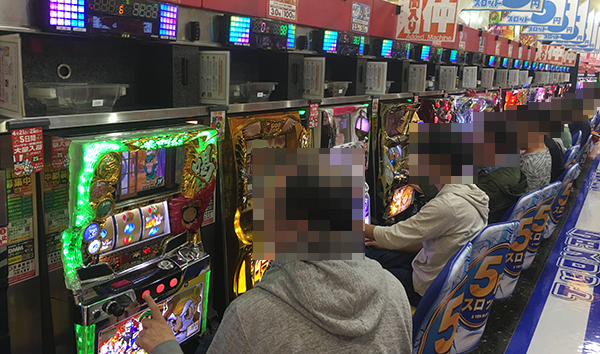 ジャグラーシリーズなどのボーナスタイプのにぎわいも大きく、シンプルな演出を楽しめている様子のプレイヤーたちの表情はイキイキとしていた。