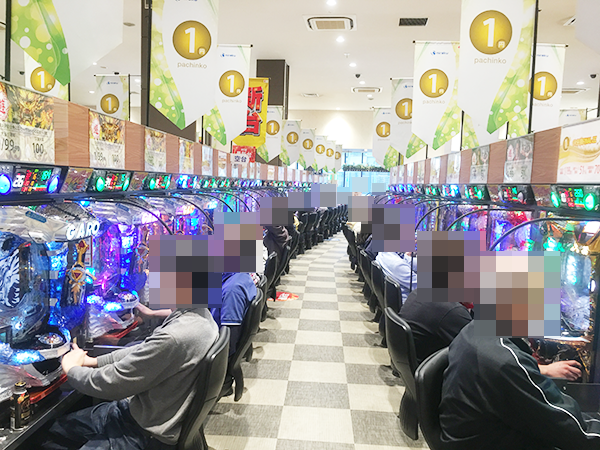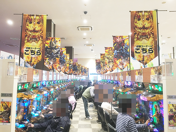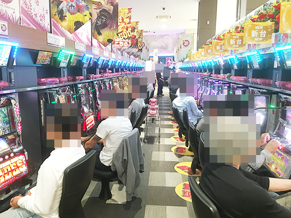 ホール内にはたくさんのプレイヤーが集まっており、パチンコ・パチスロともに大きなにぎわいをみせていた。