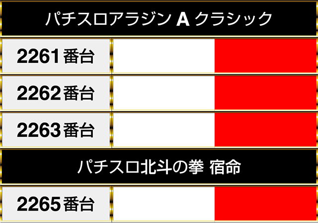 『パチスロアラジンAクラシック』の3台と『パチスロ北斗の拳 宿命』の1台が並んでプラスpt!!