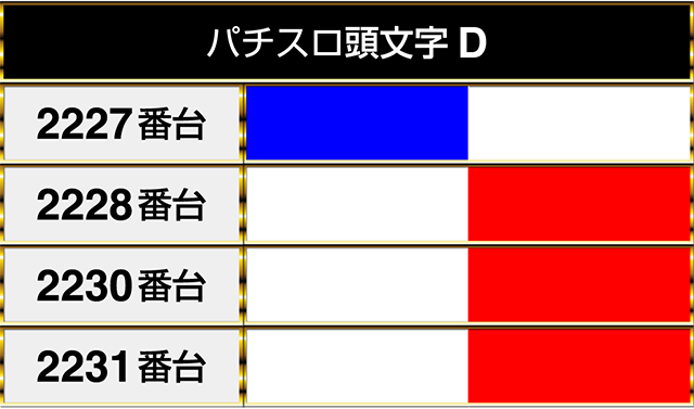 『パチスロ頭文字D』の2228番台から2231番台までにもプラスptが並んだ。