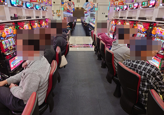 さまざまな場所からにぎわいが感じられた「セブンラック有玉店」。笑顔で遊技をおこなう姿からも満足度の高さがうかがえた。