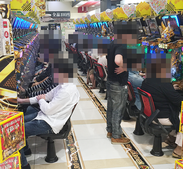 15時を過ぎた頃の4円パチンコでは、「CR牙狼 魔戒ノ花」が朝イチからの人気をキープ。