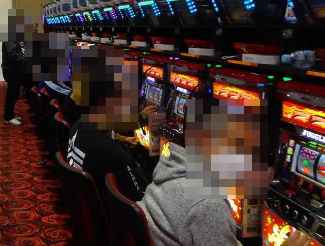 15時半頃のパチスロコーナーには、多くのプレイヤーが集合。