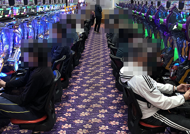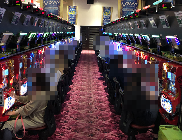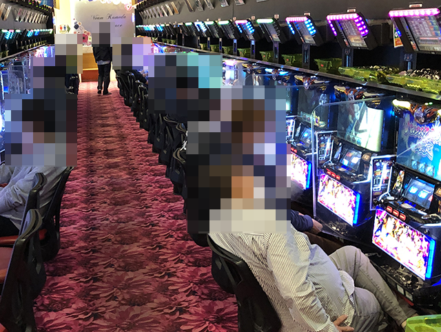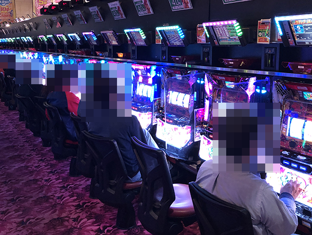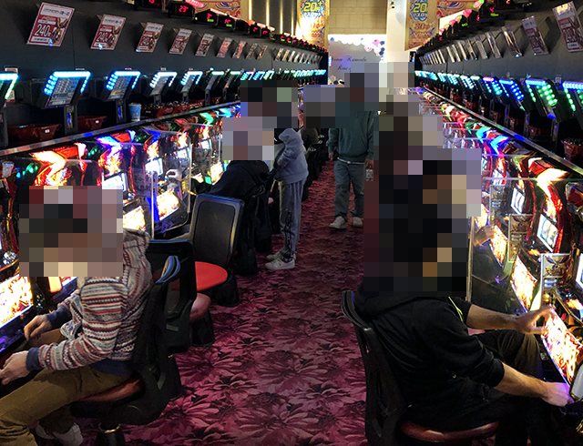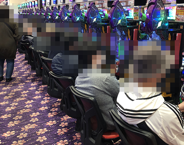 15時半頃の店内をみると、パチンコとパチスロの両方に活気のある光景が広がっていた。