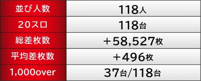 「MGM行徳店」の「ヒーローズレポート」デビュー戦は、総差枚数+58,527枚という記録で幕を閉じた。難なく勝利を収めるどころか、大きなプラスを築いており、改めて同店の実力の高さを窺わずにはいられない。この結果を受けて、ファン諸氏は同店から目が離せなくなったのではないだろうか。次回は今回以上のパフォーマンスに期待し、来たるその日までしっかりと準備を整えておくことをオススメするぞ!
