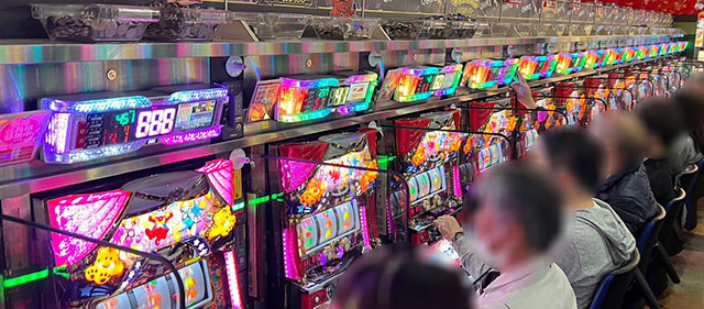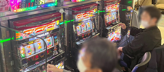 一方で王道機種『P大海物語4スペシャル』は、年配層を中心に高い稼働を披露。さらには名機『P大工の源さん 超韋駄天』と『P大工の源さん 超韋駄天 BLACK』から万発OVERが飛び出し、こちらも島の熱気を底上げしていた存在だ。『ぱちんこ 乃木坂46』『Pゴッドイーター究極一閃』『P真・一騎当千』『P真・花の慶次2〜漆黒の衝撃〜EXTRA RUSH』でも活気が見られ、パチンココーナー全体の盛り上がりに貢献していた。