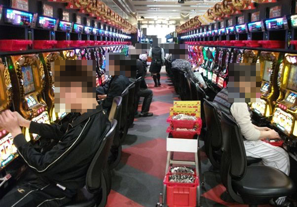 5円パチスロもにぎやかな状況となっており、たくさんのプレイヤーが遊技を楽しんでいた。