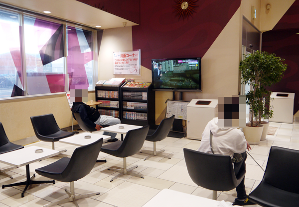 遊技面以外にも、漫画本やテレビのあるレストスペースも魅力的。