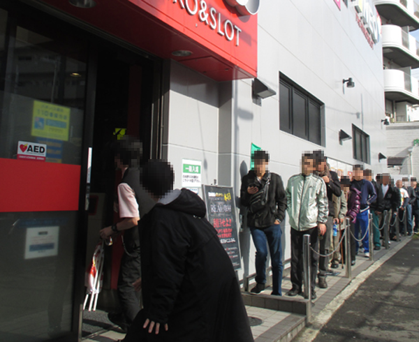 この日の開店前に集まったプレイヤーの人数は整理券での入場が30人、一般入場が40人。プレイヤーは合計で70人と多かったが、ホールスタッフの丁寧な対応でスムーズに整列できていたことが印象に残っている。