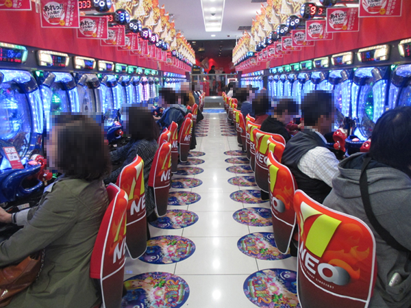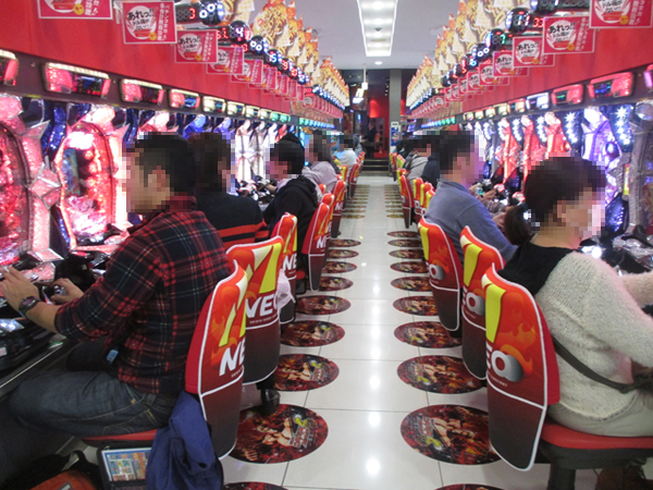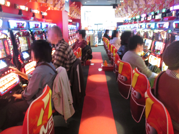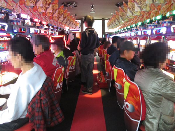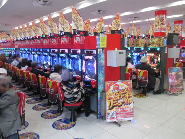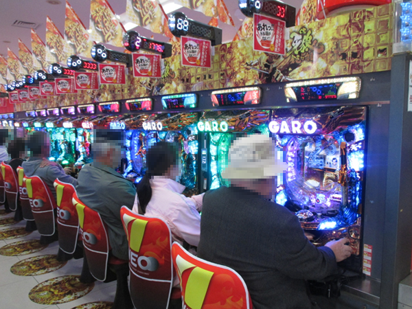 14時を過ぎた頃のパチンココーナーは、大量に設置されている「ぱちんこCR北斗の拳6 拳王」や「CR牙狼 金色になれ」、「CRA大海物語2Withアグネス・ラム」といった機種はほぼ満席状態。なかには笑顔で遊技しているプレイヤーの姿も見られた。