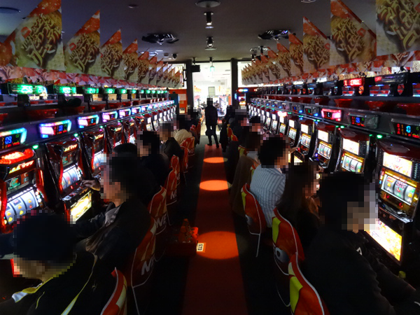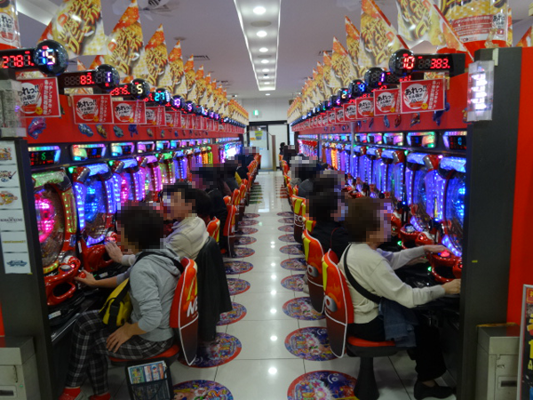 パチンココーナーは14時を過ぎると8割以上の台が埋まっており、コーナー全体が大きく賑わっていた。