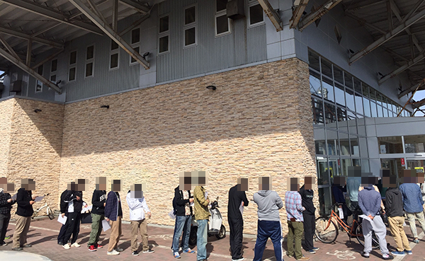 取材日の4月9日は朝イチから30名ほどのプレイヤーが集合。早い時間帯から並んでいるプレイヤーの姿もみられ、ホールに大きな期待を寄せていることが伝わってきた。
