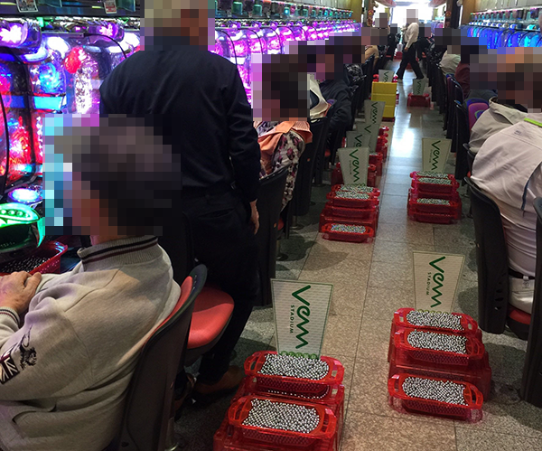100円/25玉パチンコをみると、「CRスーパー海物語IN沖縄3」などの海物語シリーズが盛況で空き台も少ない。なかには、機種の性能を最大限に引き出しているような姿もあり、ひときわ活気づいていた。