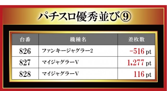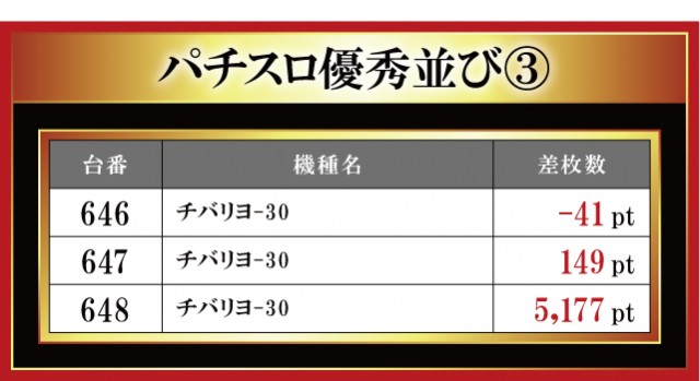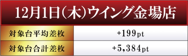 恒例となった月イチ実施の「はねバト!」。12月1日に実施された「金場店」におけるパチスロコーナーの模様をお伝えしていこう。今回はジャグラーVS沖スロといった様相にも見える。6号機ジャグラーの第4弾として登場した『ハッピージャグラーVⅢ』も3台並びに名を連ねており、803番台などはそれなりに結果も出た。ただ、全体的に粘られていない印象もある。今回の結果を参考に次回の3台並びを予測し立ち回って行って欲しい。