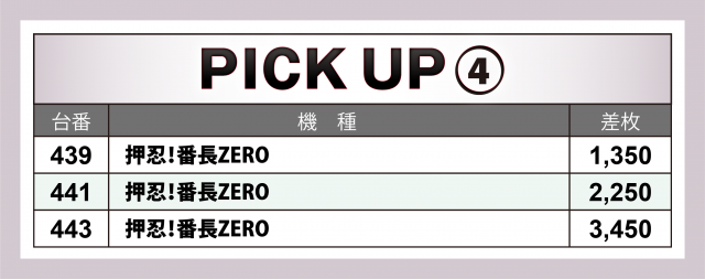 続いては好調4機種18台をチェック。まずはジャグラーシリーズ2機種から。『アイムジャグラーEX』は+4千枚弱の台をトップに6台で+1万5千枚突破、『マイジャグラーⅤ』は6台合計で+1万枚オーバーに。また+4千枚超の台を筆頭に3台トータルで+8千枚弱となった『パチスロ甲鉄城のカバネリ』、さらに『押忍!番長ZERO』は+3千枚中盤の台を首位に3台合計で+7千枚超と、2機種が輝かしい成績を残した。