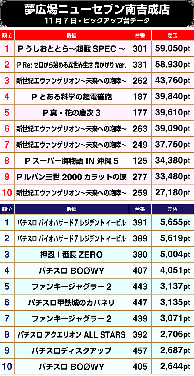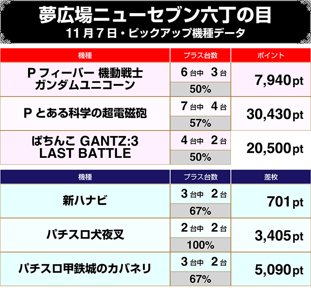 『押忍!番長ZERO』も+5,004ptを記録するなど、ピックアップ常連の機種に魅力的な結果が残った。