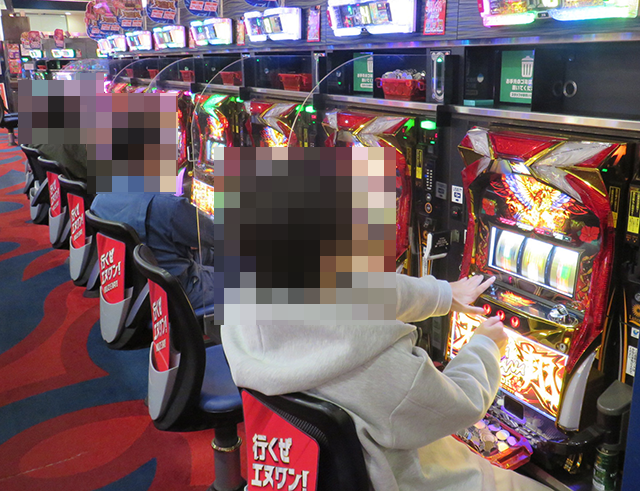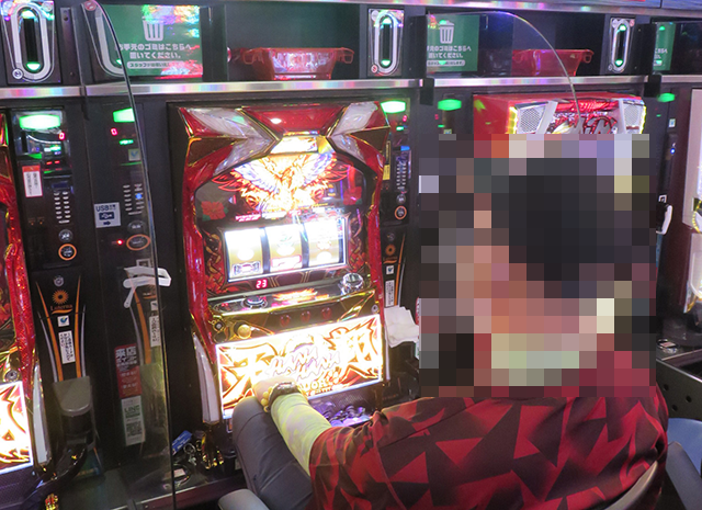 なかでも存在感を放っていたのは、「ハナハナホウオウ~天翔~-30」で遊技をおこなっている姿だ。