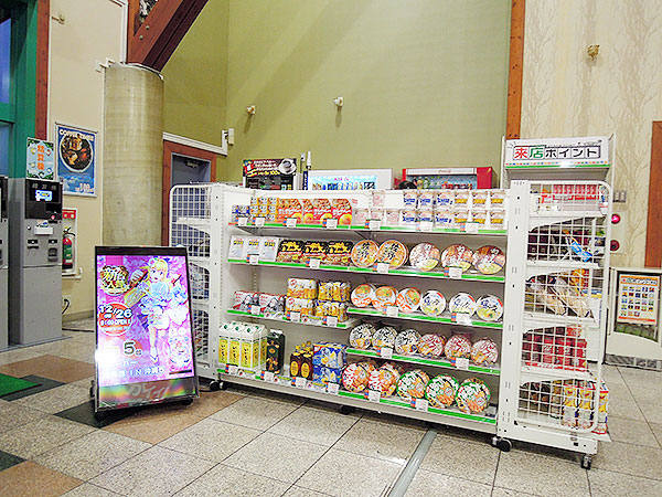 景品コーナーにはインスタント食品や酒類など多彩なアイテムが用意されており、プレイヤーたちの目を引いていた。