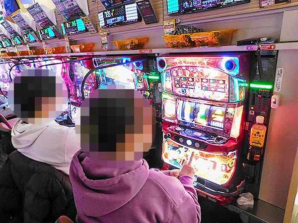 500円/89枚パチスロを見ると全体的に高稼働。華やかな光景をあちこちで目撃している。