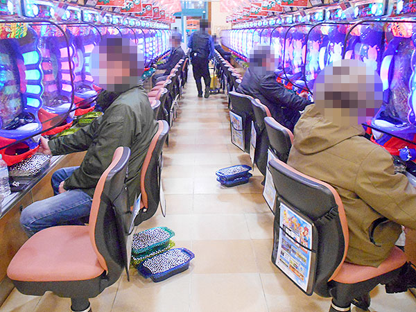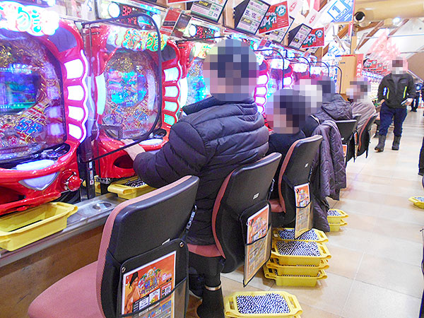 15時半ごろの4円パチンコを見てみると「P大海物語4スペシャル」や「P大工の源さん 超韋駄天 LIGHT」が活況。プレイヤーの満足そうな表情から、充実した時間を過ごしていたことがうかがえる。