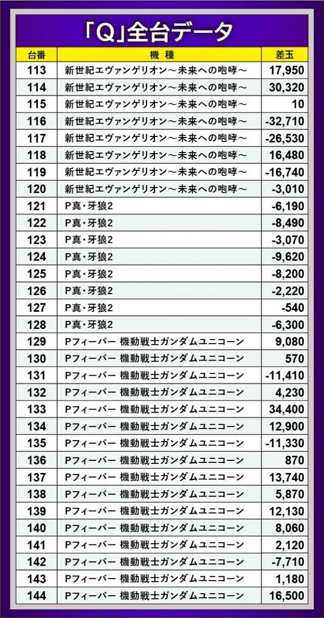今なお根強い人気の持つ『新世紀エヴァンゲリオン〜未来への咆哮〜』では+30,320玉、『Pフィーバー 機動戦士ガンダムユニコーン』でも+34,400玉が記録された。これら機種から万発OVERが多発しており、好展開にファンは恍惚の表情を浮かべていたことだろう。