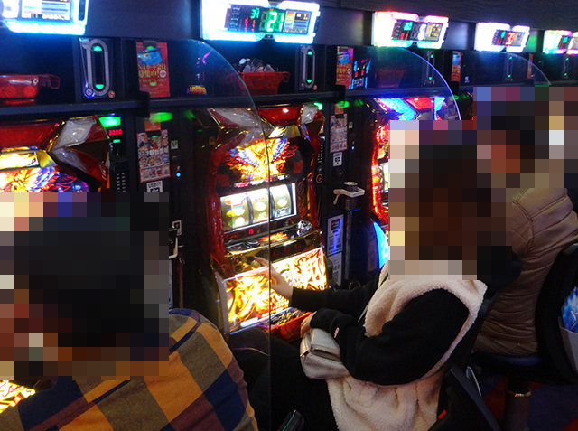 20円パチスロと5円パチスロの両方に、「ハナハナホウオウ~天翔~-30」などの沖スロが設置されているホールだ。
