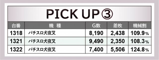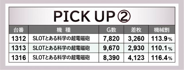 各AT機の活躍が見られるなか、特に存在感を放っていたのが『押忍!番長ZERO』『SLOTとある科学の超電磁砲』『パチスロ犬夜叉』の3機種だ。いずれも多くのゲーム数が消化されており、差枚数と比例するかのようなグラフを描く台が多く見られた。大量獲得に成功したファンも多く、レバーを叩くたびに期待が確信へと変わっていったことだろう。