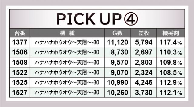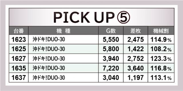 一方で沖スロ機種の存在も見逃せない。『ハナハナホウオウ~天翔~-30』もまた多くのゲーム数が消化され、万回転OVERも複数台発生していた。1377番台+5,794枚のように、ハイビスカスの輝きがコンスタントだったのも印象的である。また『沖ドキ!DUO-30』も同様で、繰り返し天国への移行が確認できたことだろう。レバーオンに力が入る機種だからこそ、遊技していたファンの誰もが有意義な時間を過ごしていたに違いない。