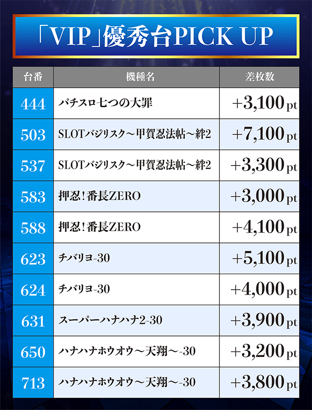 機種全体で+10,000ptオーバーとなった「チバリヨ-30」は、2台が+4,000pt以上。