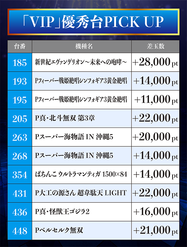 「P大工の源さん 超韋駄天 LIGHT」と「Pベルセルク無双」は+20,000ptを上回った。
