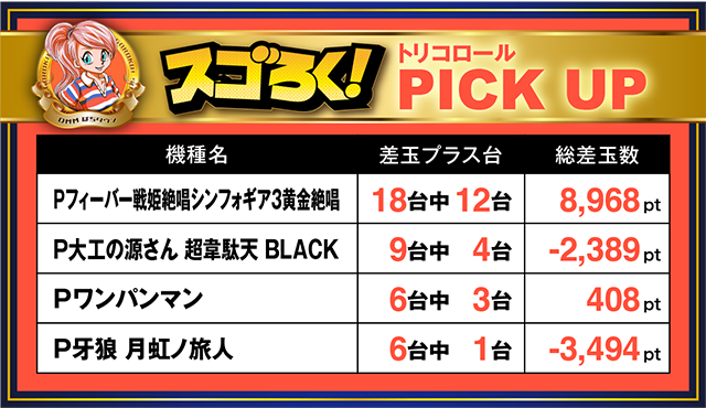 最終的には18台中12台がプラスで、多くのプレイヤーが遊技を楽しめたみたいね。