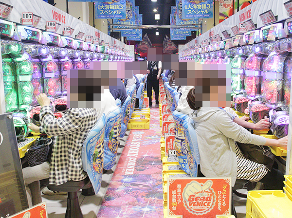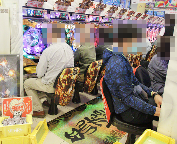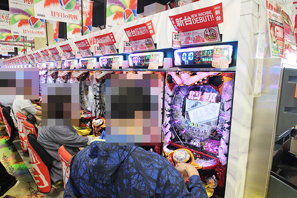 パチンコの魅力を存分に味わっていると思われるプレイヤーの姿もあり、ホール内でもトップクラスの盛り上がりをみせていた。