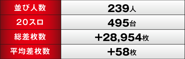 かくして最新スマスロだけでなく、定番人気機種も活躍する結果となり、終わって見ればトータルで+28,954枚という差枚を記録。ガッチリと勝利をものにした。今後も、目が離せない注目ホールであることは間違いなさそうだ。