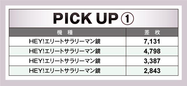 ピックアップ機種では、優秀台としても紹介した『HEY!エリートサラリーマン鏡』、『パチスロ 革命機ヴァルヴレイヴ』、『押忍!番長ZERO』が賑わっていた。