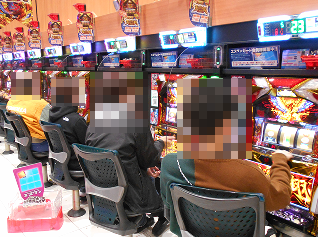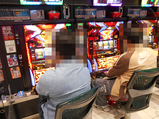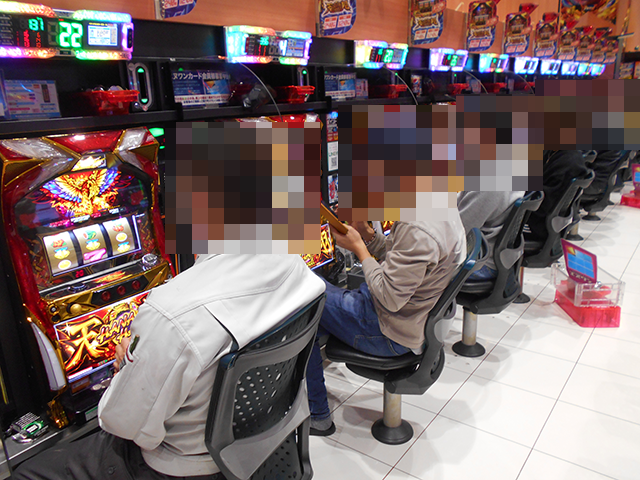 パチンコとパチスロの両方がにぎわっており、随所に華やかな光景が広がっていた。