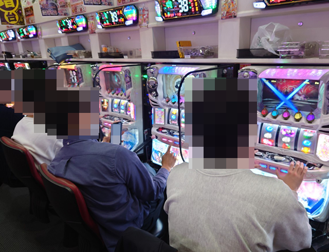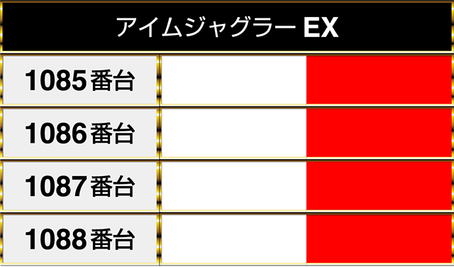 『アイムジャグラーEX』と『マイジャグラーV』にも4台が並んでプラスptとなる場所があった。