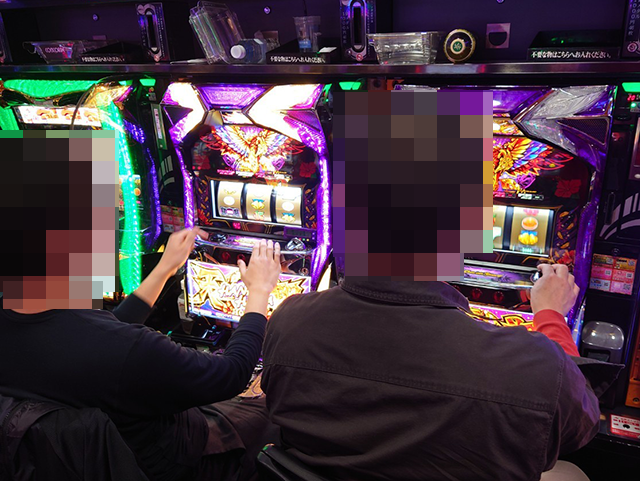 遊技を満喫しているようなプレイヤーが並んでいた『ハナハナホウオウ~天翔~(紫パネル)』も盛況!