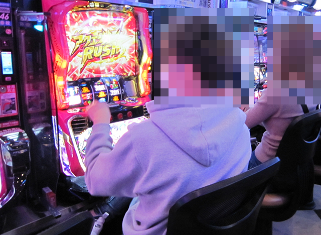 シマをみてみると、うれしそうに遊技をおこなっているプレイヤーを発見! 機種のおもしろさを味わい、ステキなひとときを過ごせていたようだね。